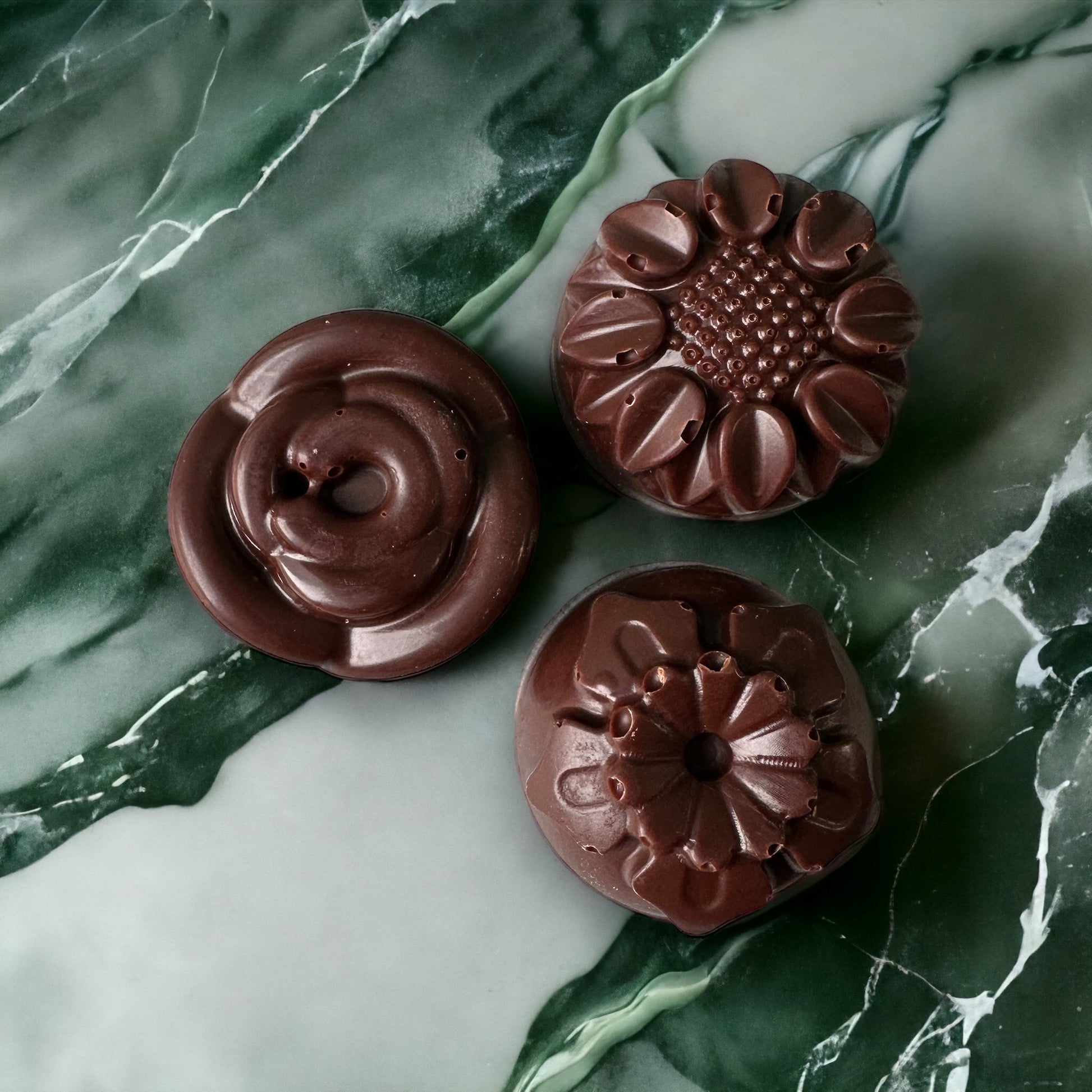 Our Single Origin Chocolate formed into 3 beautiful flowers. Available in multiple single-origin varietals.